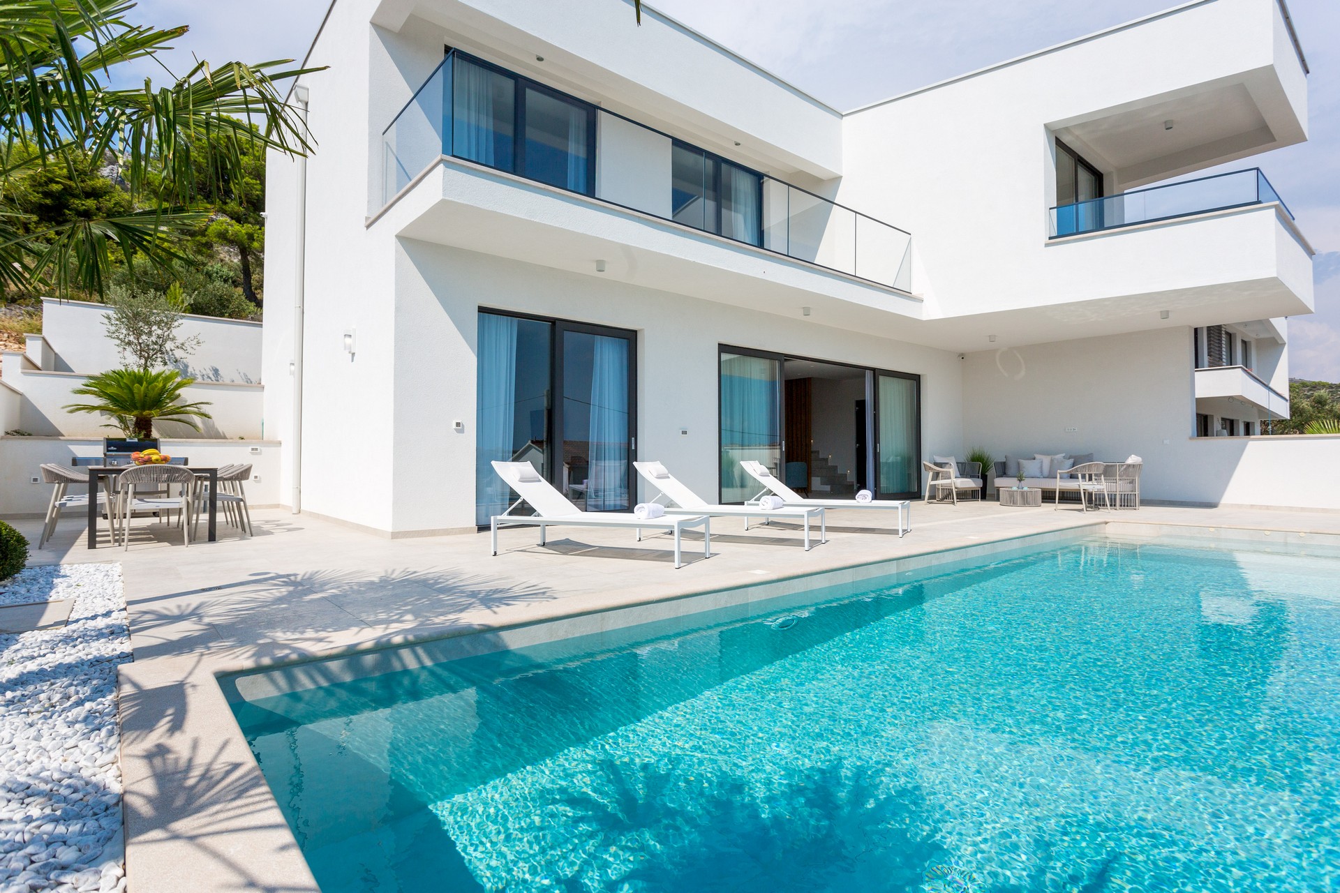 Uz sve pogodnosti koje pruža ova prekrasna vila, treba istaknuti i fantastičnu lokaciju. Ne samo što se nalazi blizu mora i prelijepih plaža, ova vila se nalazi i u blizini Zračne luke Split te prekrasnih dalmatinskih bisera Trogira i Splita koje svakako vrijedi posjetiti.