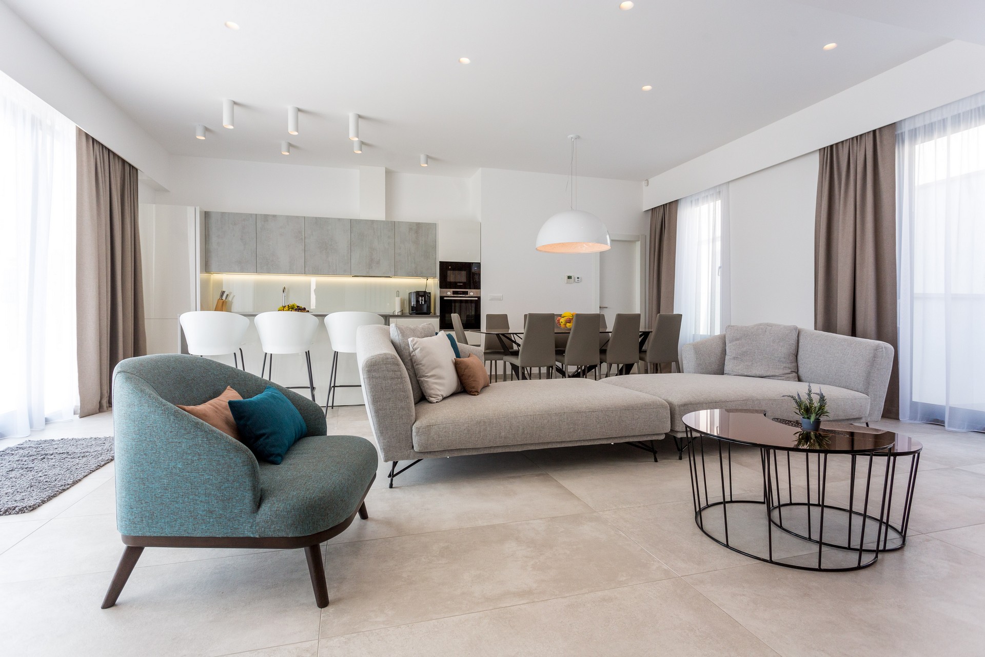 Veličina kuće je 350 m2 te ne začuđuje spajanje kuhinje, blagovaone i dnevnog boravka u otvoreni tlocrt kako bi cijela prostorija bila okupana suncem i pružala pogled na more. Cijela vila je klimatizirana i pokrivena bežičnim internetom. Potpuno opremljenu kuhinju krasi kvaliteta i funkcionalnost, a dnevnom sobom dominiraju neobičan luksuzni kauč i Smart Tv veličine 163 cm. Spavaće sobe s ensuite kupaonicama opremljene su udobnim krevetima dimenzija 2×2,10m koji se mogu po potrebi razdvojiti na dva jednoležajna kreveta dimenzija 1 x 2,10m. Dva dodatna ležaja se nalaze u gaming roomu. Vila raspolaže sa čak 5 vrhunsko uređenih kupaonica, jednim odvojenim toaletom, a postoji i odvojena prostorija sa perilicom i sušilicom rublja. Zabavni sadržaji kao što su